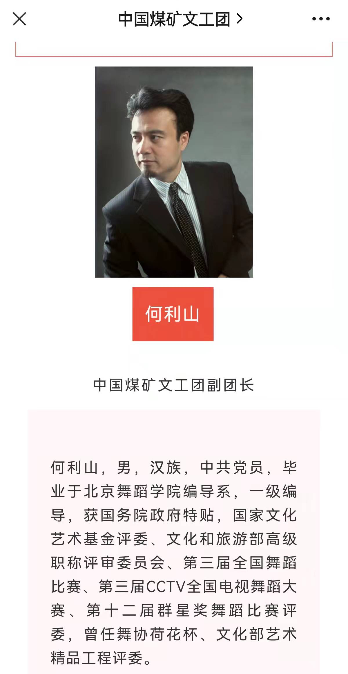 27日晚,煤矿文工团的公众账号正式对外公布了这则信息。内文称,煤矿文工团在当天召开了处级以上的干部大会,在会上宣布了任命决定:何利山和靳东为中国煤矿文工团副团长。