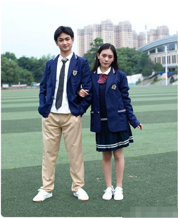 而有的学校的校服,是穿西装、打领带。这样的校服,价格大概会贵一些。