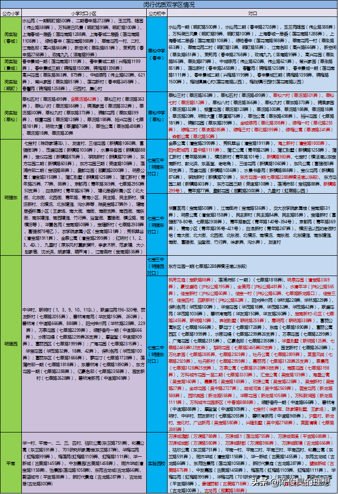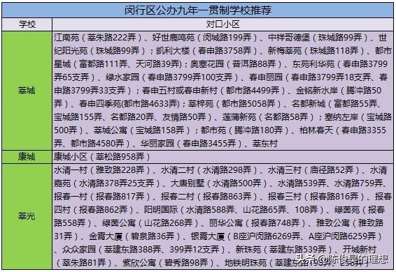 5. 单公办初中学区:闵华二、莘松(春申)、七宝三中、实验西、莘松(莘松)、七宝二中、交大二附、七宝实验等