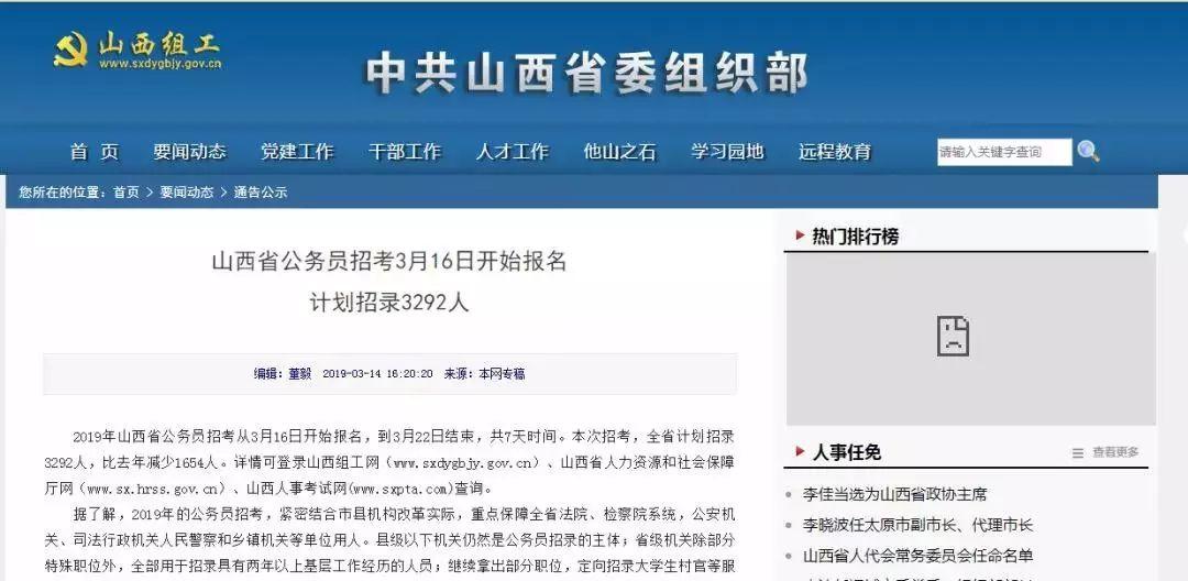 2019年山西省公务员招考从3月16日开始报名,到3月22日结束,共7天时间。本次招考,全省计划招录3292人,比去年减少1654人。