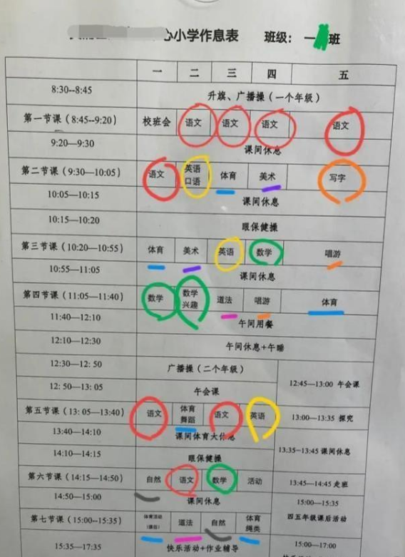 但大家发现双减过后,很多小学都对英语这门学科做了一些改动,就比如这张小学生一周的课程表,大家发现一周英语课只有三节课,其中还有一节是英语口语。