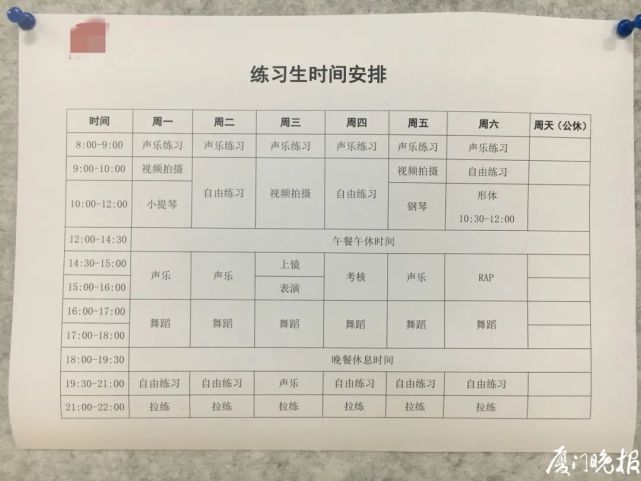 多位前练习生均表示,公司的课时量少,虽然有课表,但并没有完全按课表执行,很多时候是自己根据手机视频自主练习。