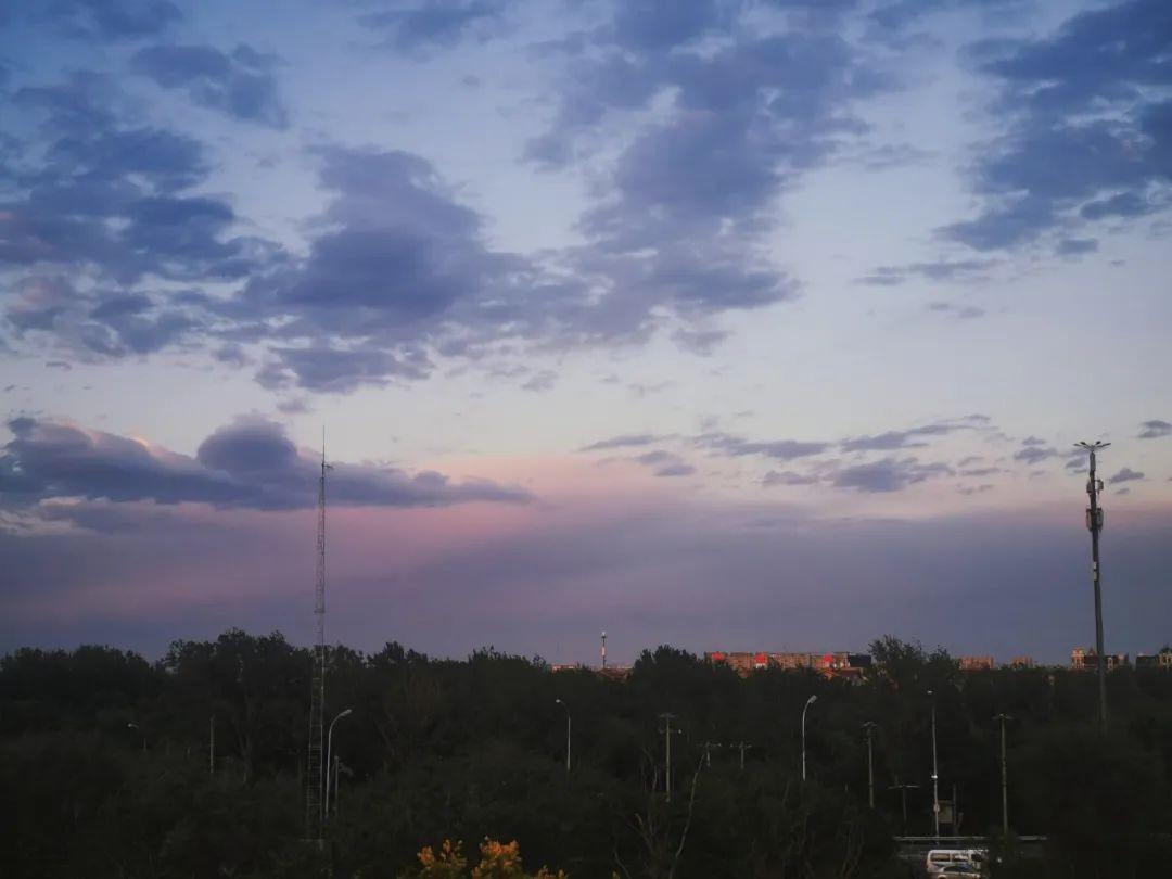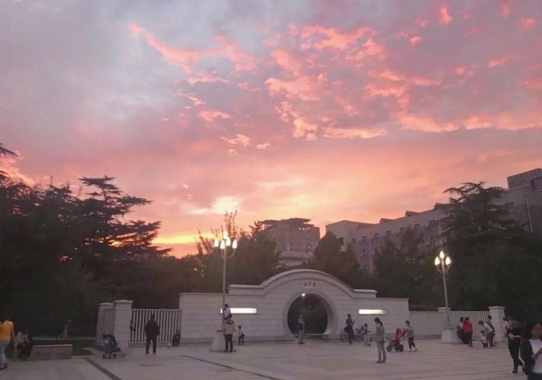 望向尚且微亮的天空,丝丝缕缕的云懒散地飘在天上,远处的晚霞泛着金黄的光。而同时,近处的校园也刚好被灯光晕染得闪闪发光,不管从哪个角度看过去都是绝配。夏天是多变的,夏日的晚霞亦然。总是“不按常理出牌”的它,也常常把北方工大校园染成淡淡的粉色,或是暖暖的橘色,温柔又治愈。