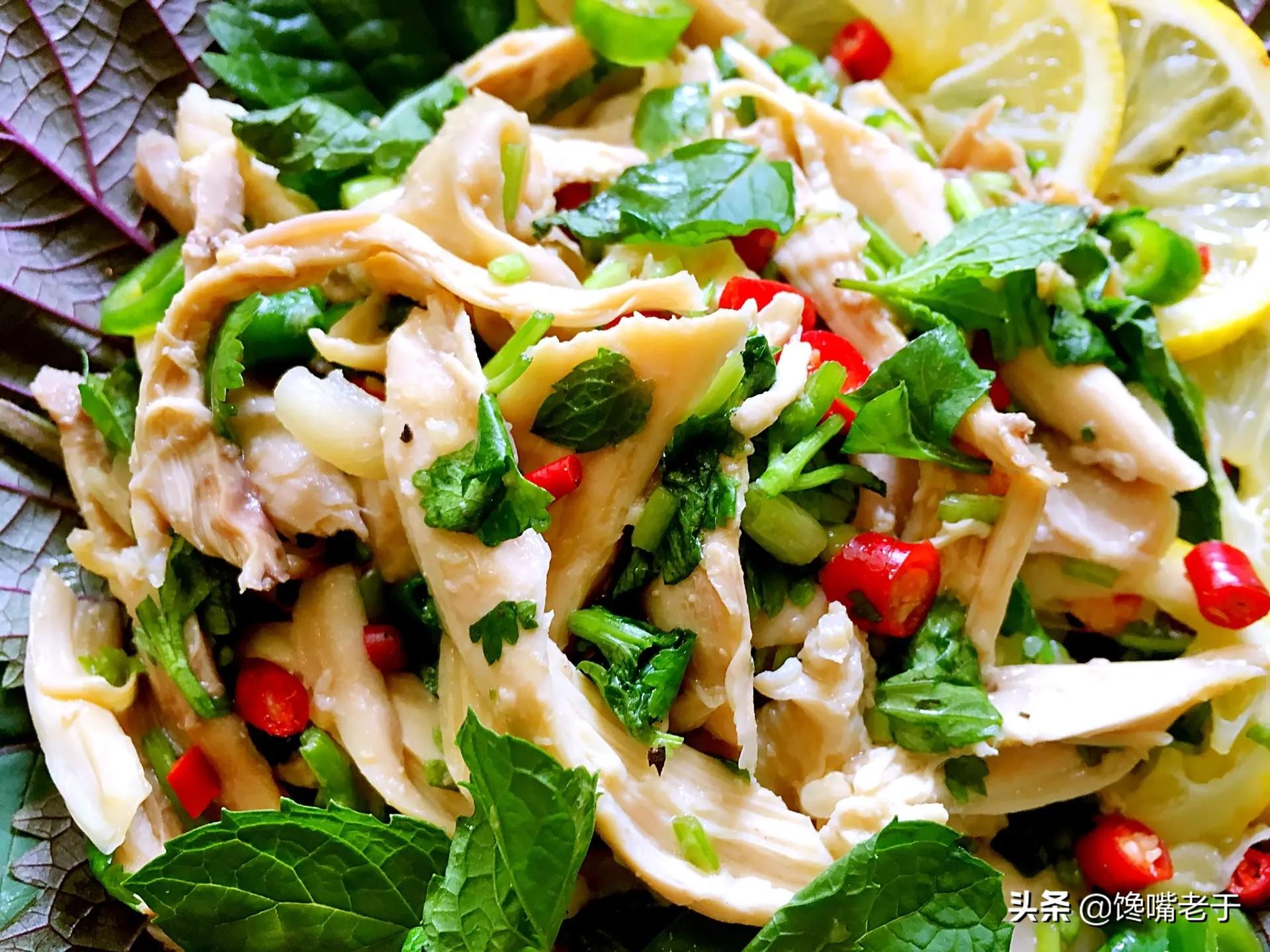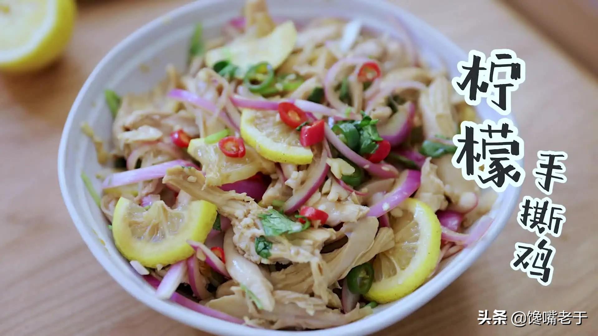 手撕柠檬鸡其实就是将鸡肉撕成丝,然后再凉拌。其酱汁完全可以用凉拌大虾的“万能酱汁”,同时多放几片柠檬。
