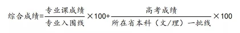 3.对实行平行志愿投档的省份批次,依据各省(区、市)综合成绩折算方式和投档规则作为专业录取依据,从高到低择优录取。对采取其他投档方式的省(区、市)批次按综合成绩 =文化课成绩(含高考加分)×60% + 专业课成绩×40%作为专业录取依据,从高到低择优录取。