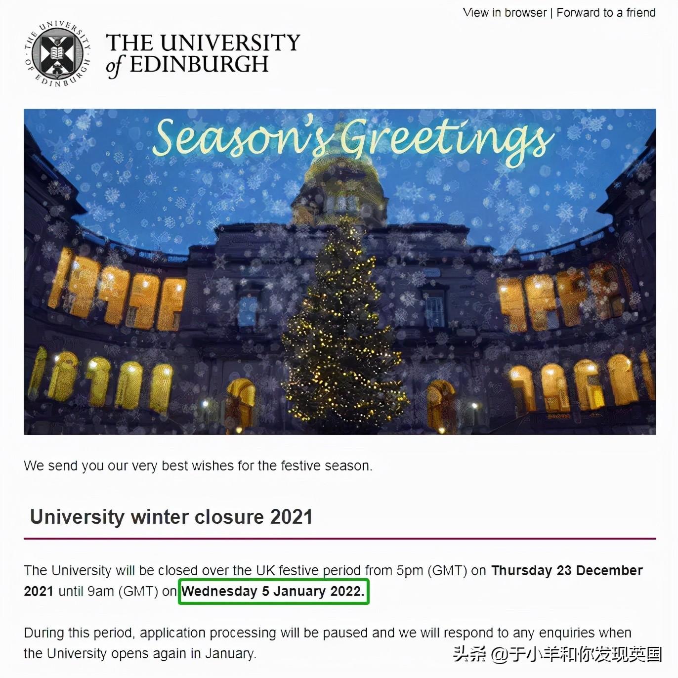 The University of Edinburgh 爱丁堡大学:2021年12月23日至2022年1月5日
