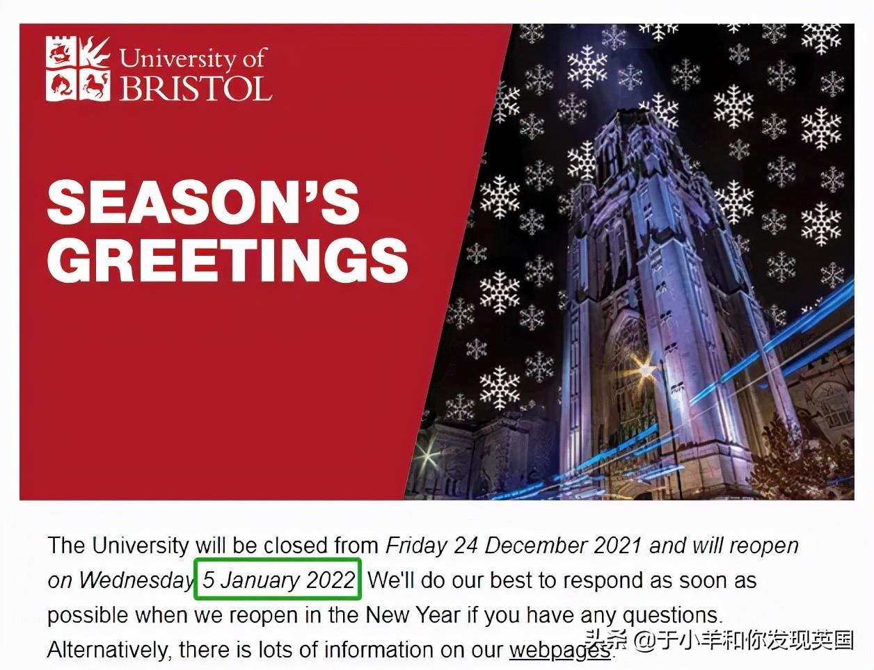 University of Bristol布里斯托大学:2021年12月24日至2022年1月5日