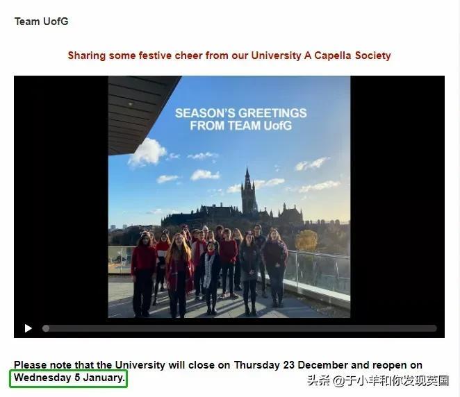 University of Glasgow 格拉斯哥大学:2021年12月23日至2022年1月5日