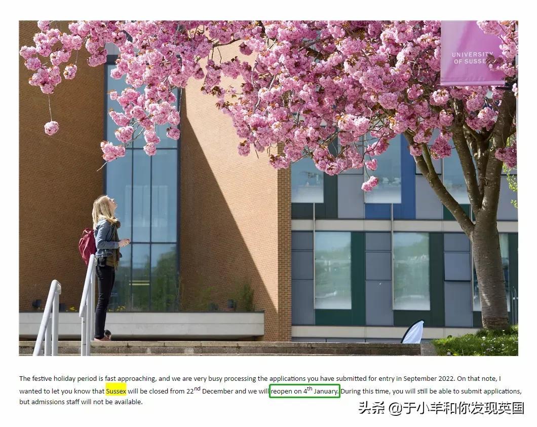 University of Sussex萨塞克斯大学:2021年12月22至2022年1月4日,可以正常递交申请,但不会审核~