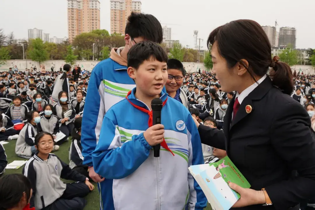 在课后的互动交流环节,同学们结合当天课程、生活体验和思考感悟提出了问题,或是“读书明智以学法悟道”,或是“点石成金,滴水成河,从小事开始遵纪守法”,或是“电信网络诈骗防治和查处”······检察官一一作答,并为积极参与互动的孩子送上了小礼品。