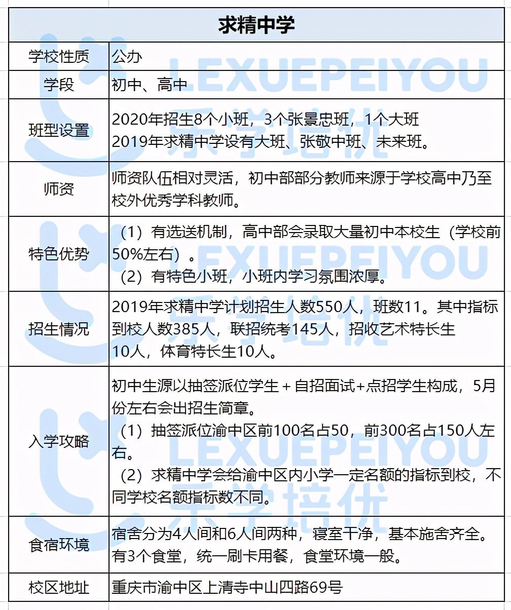 创办于1891年的求精汇中学(原重庆第6中学),是全面迈向重庆市首批示范性高中的百年历史名校。学校国防教育特色突出,2005年学校成为原成都军区国防生源基地学校。很多家长和学生说“求精中学”是“重庆7大直属校外最好的中学”!