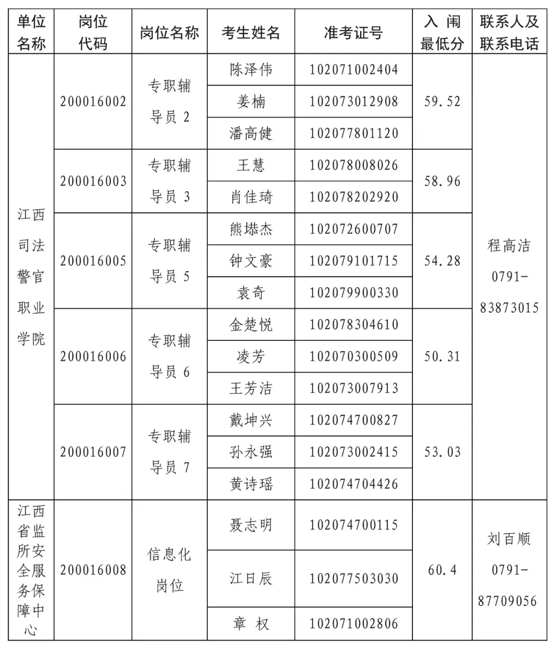 (二)资格审查地点:①江西司法警官职业学院岗位在行政楼一楼报告厅(长青路76号);②江西省监所安全服务保障中心在省司法厅机关办公楼1306房间(北京西路39号)。