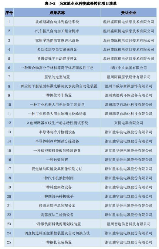 (2017 年获评浙江省应用技术协同创新中心、2019 年经教育部认定为国家级协同创新中心,该中心面向温州制造业转型升级,实施“立地式”研发服务,开发了一批高端智能装备,已获得专利 547 项,其中发明专利 254 项,并转让 167项,实施技术开发 372 项,获得省市各项支持 208 项,实施技术技能专项培训和咨询服务 580 余项, 中心“多模式电磁场可控涂层技术及装备研发”成果获得浙江省科技进步奖一等奖。)