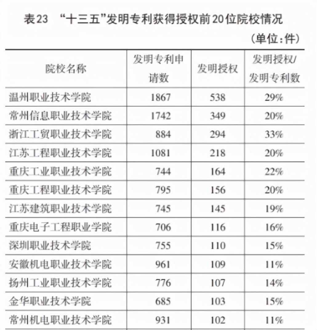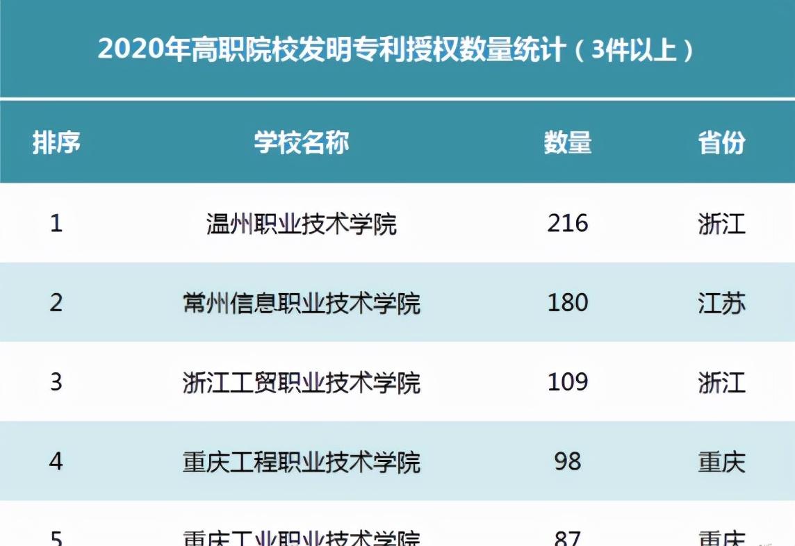 在2020年全国高职院校发明专利排行榜中位居首位!发明各项专利高达216项。