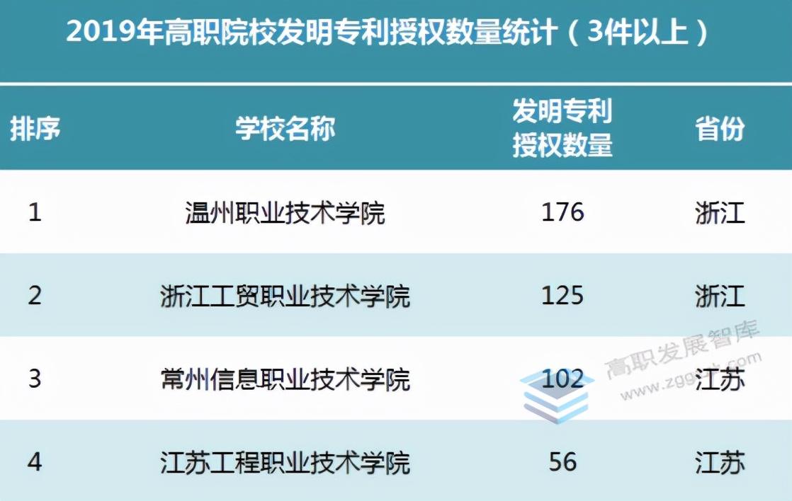 在2019 年全国高职院校发明专利排行榜中位居首位!该校发明各类知识产权 282 项,其中授权发明专利 176 项。