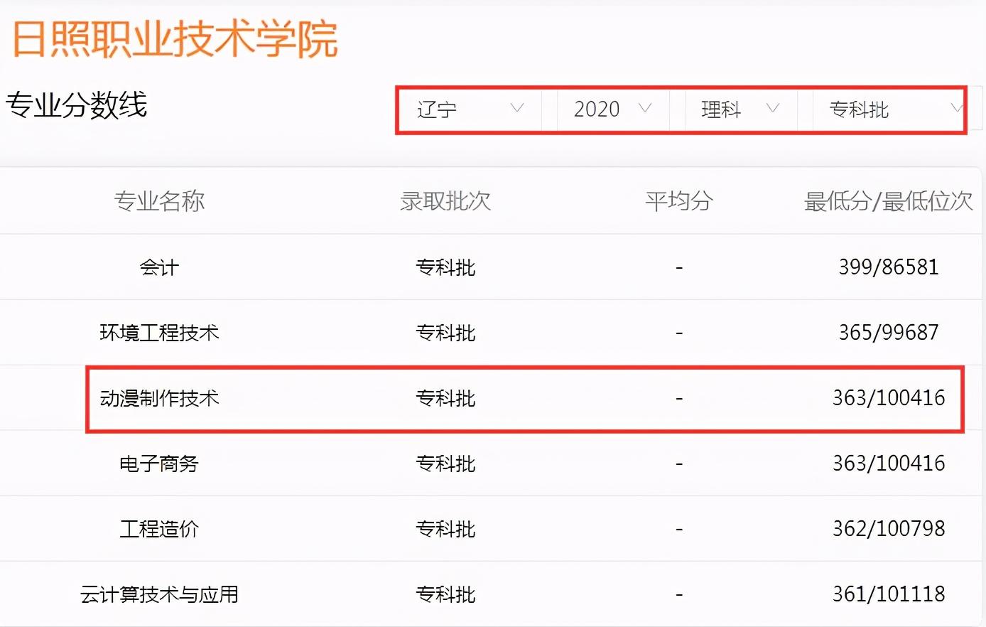 同样以辽宁省考生为例,理科生360多分就可以考上日照职业技术学院,还有动漫制作相关的专业可以学习,文科生分数线相比较要比理科生高出100多分。
