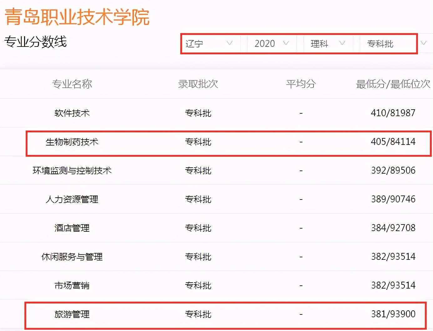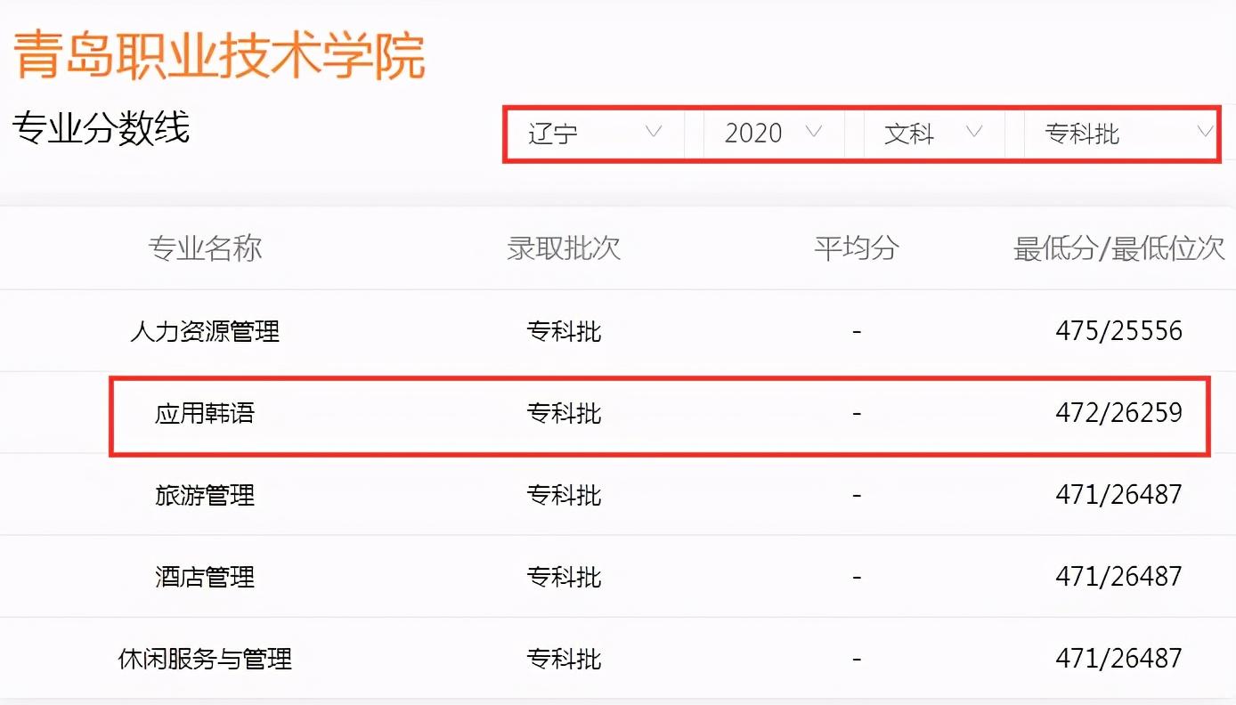 青岛职业技术学院去年辽宁省的理科考生,381分可以考上旅游管理专业,文科生472分就可以考上应用韩语专业,这个专业目前就业非常好,可以做翻译或者是韩语老师。