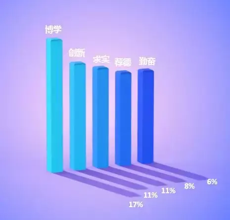 此外,“勤奋”、“求实”的出现频率也都达到了6%,