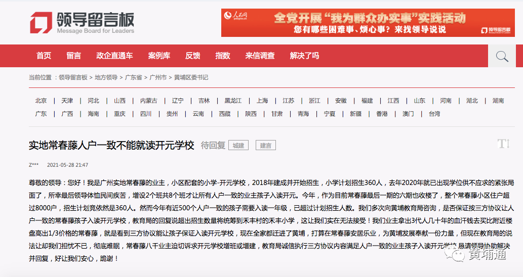 我们多次向黄埔教育局咨询,是否保证按三方协议让人户一致的常春藤孩子入读开元学校,教育局的回复说超出招生数量将统筹到禾丰村的禾丰小学,这让我们实在无法接受!