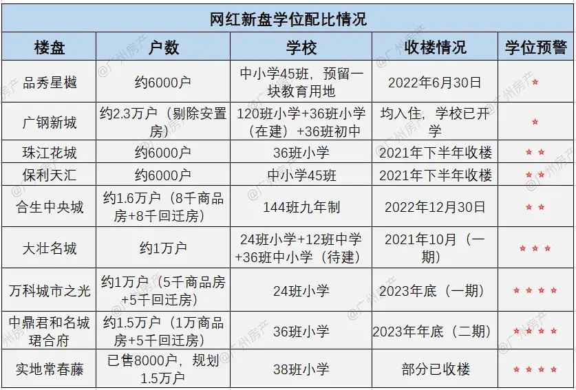 关于网红新盘的学位情况,大家可以参考这个表格: