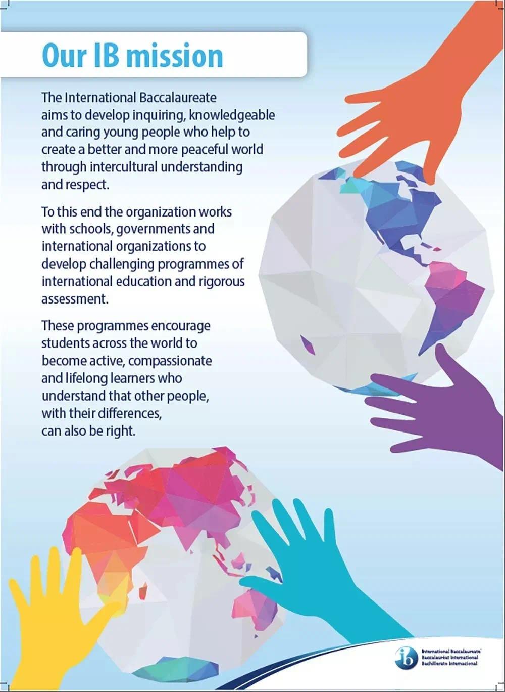 国际文凭组织的目标是培养勤学好问、知识渊博、富有爱心的年轻人,他们通过对多元文化的理解和尊重,为开创更美好、更和平的世界贡献力量。