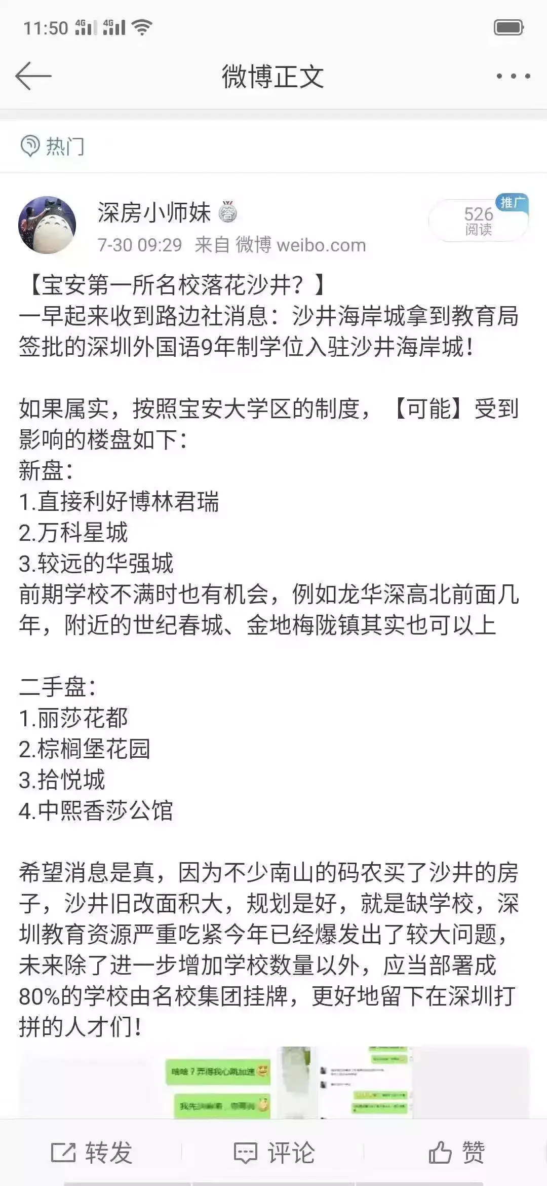 地铁和学位一直是深圳房价上涨的利器,本次名校落户沙井的消息如果被官方确认,对沙井的发展无疑又是一个巨大利好,有名校光环加持,房价上扬也是必然的事。
