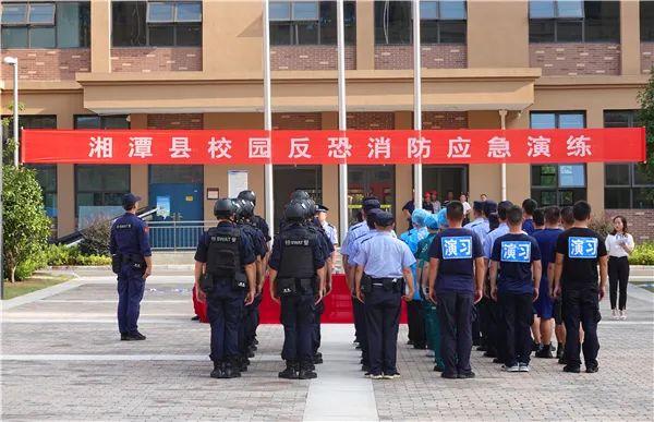 7月14日下午,湘潭县公安局、应急管理局、卫健局、教育局经过提前谋划、精心准备,在天易贵竹学校开展了一场惊心动魄的“反暴恐”应急处置演练活动。