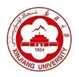 两圆之间,是以汉文、维吾尔文、英文书写的“新疆大学”校名。