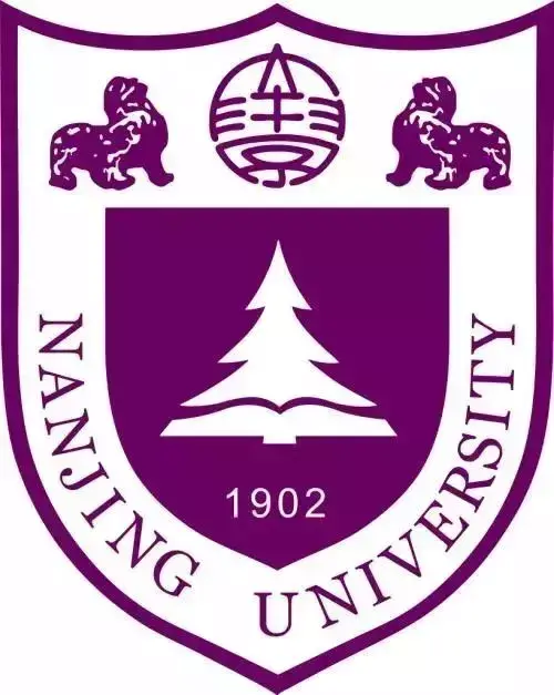 校徽的左下方及右下方为英文“NANJING UNIVERSITY”。校徽正中为南京市树——雪松,寓意南大坚忍不拔的精神。雪松的下方为书图案及“1902”字样,点明南京大学的建校时间为1902年。