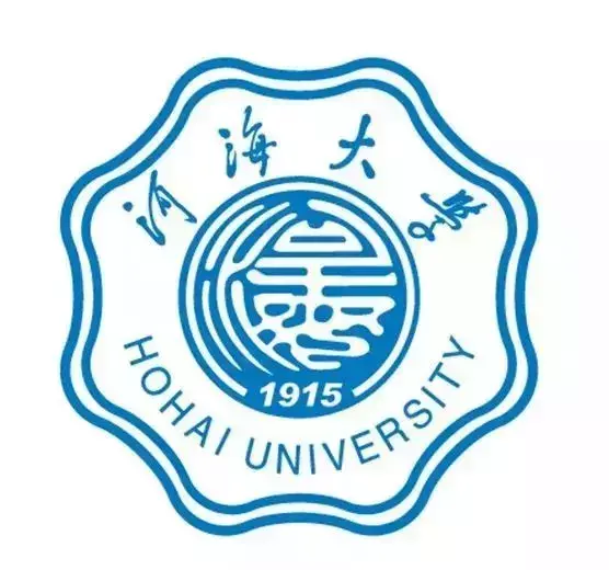 校徽为梅花形图案。校徽中间的“河海”篆字和白底蓝字的整体色系是继承1915年学校创建时期河海工程专门学校的校徽图样和色系,选取河海蓝为标准色,代表了河海大学缘水而生、因水而为、顺水而长的水利专业办学特色。篆字图样的上方是1985年恢复传统校名时邓小平同志题写的校名标准字,图样下方是学校的建校年份“1915”和英文名称。