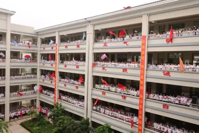 高中部每一个班级都会班级文化展示,每一位学生的理想院校都会粘贴在教室外墙上。高三学生每两周回家一次。