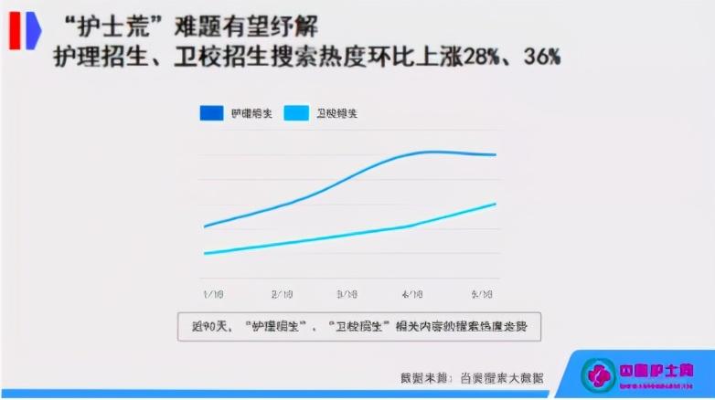 一方面,疫情加深了护士的职业归属感;另一方面,“护理招生”“卫校招生”相关内容的搜索热度也分别环比上涨28%、36%。