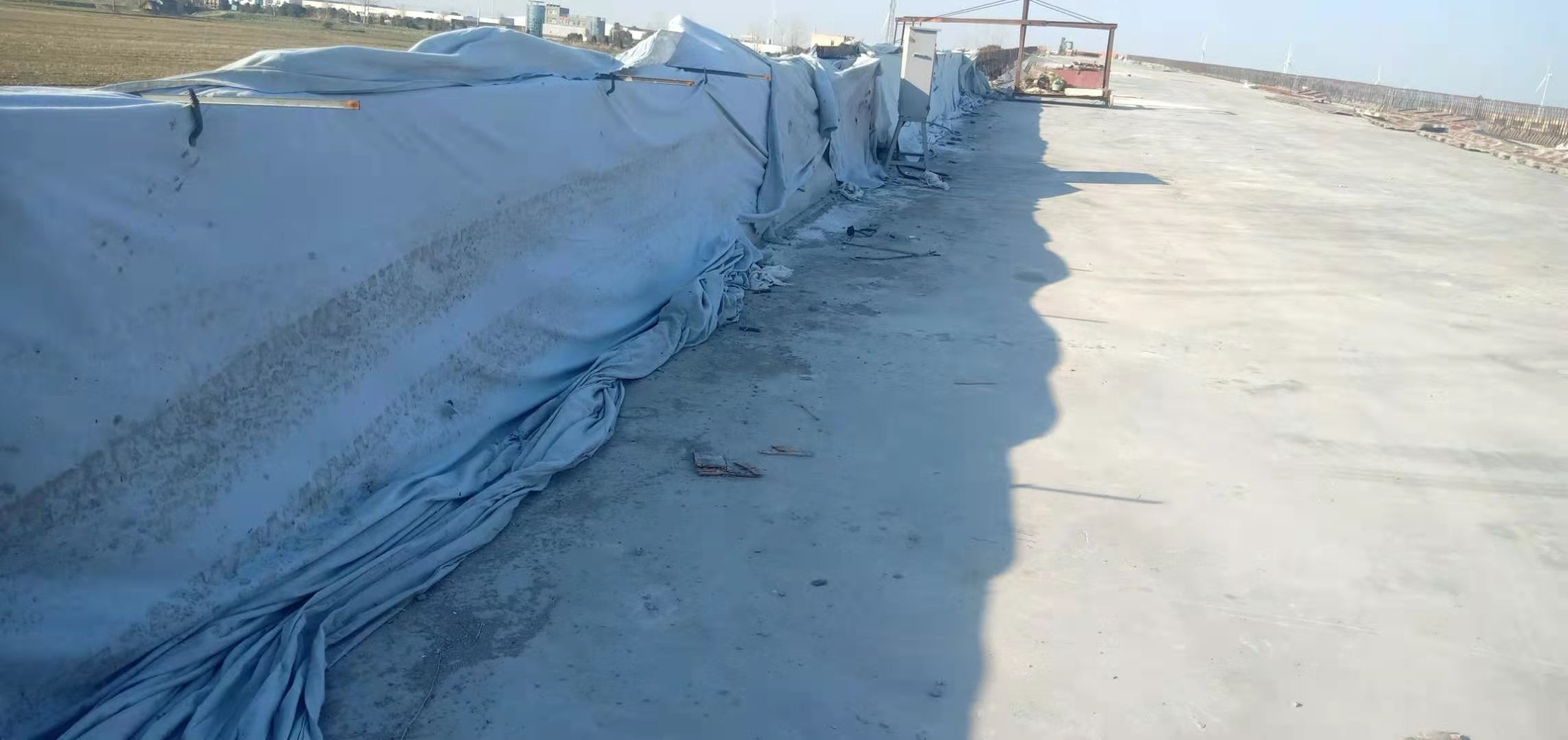 (1)混凝土浇注完成后,进行混凝土养护,混凝土面有模板覆盖时,采取洒水养护,并使模板保持湿润,且混凝土顶面加盖无纺土工布洒水养护,但在开始养生前,覆盖物不得接触混凝土面。