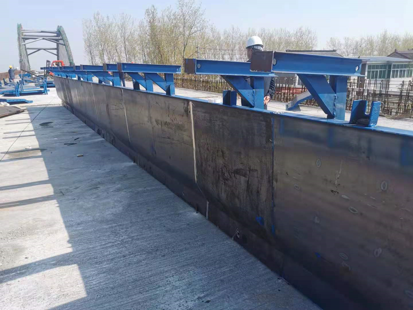 (1)模板采用特制钢模,由面板、纵横加劲肋、背楞等组成,强度、刚度和稳定性满足施工要求。