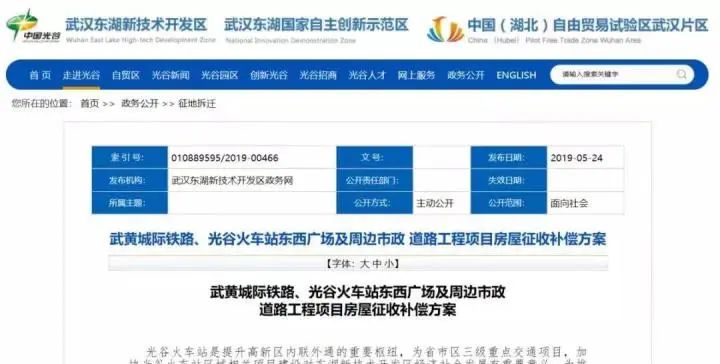 征收范围:武黄城际铁路、光谷火车站东西广场及周边市政道路建设用地国有土地