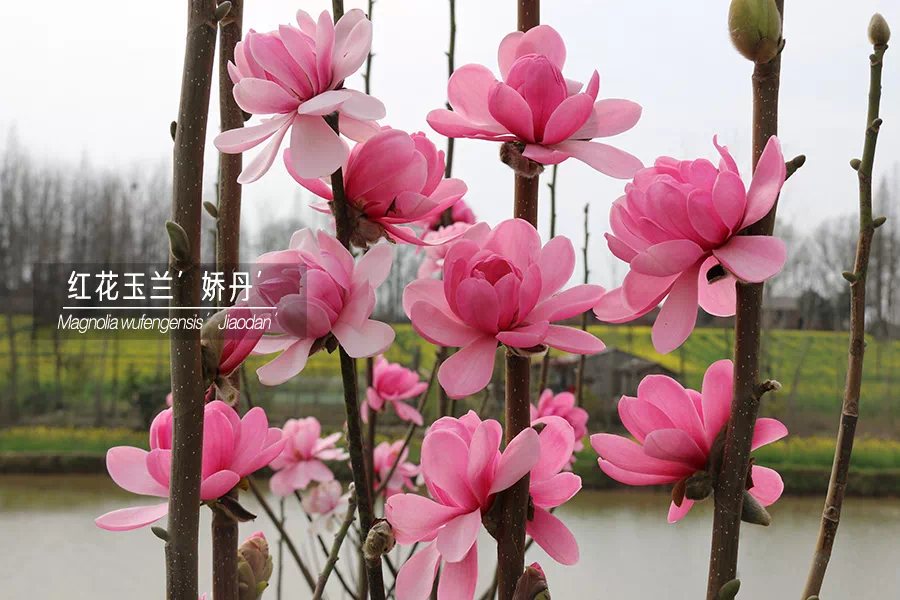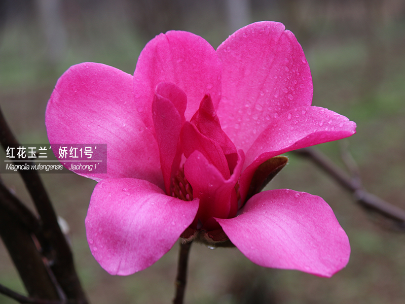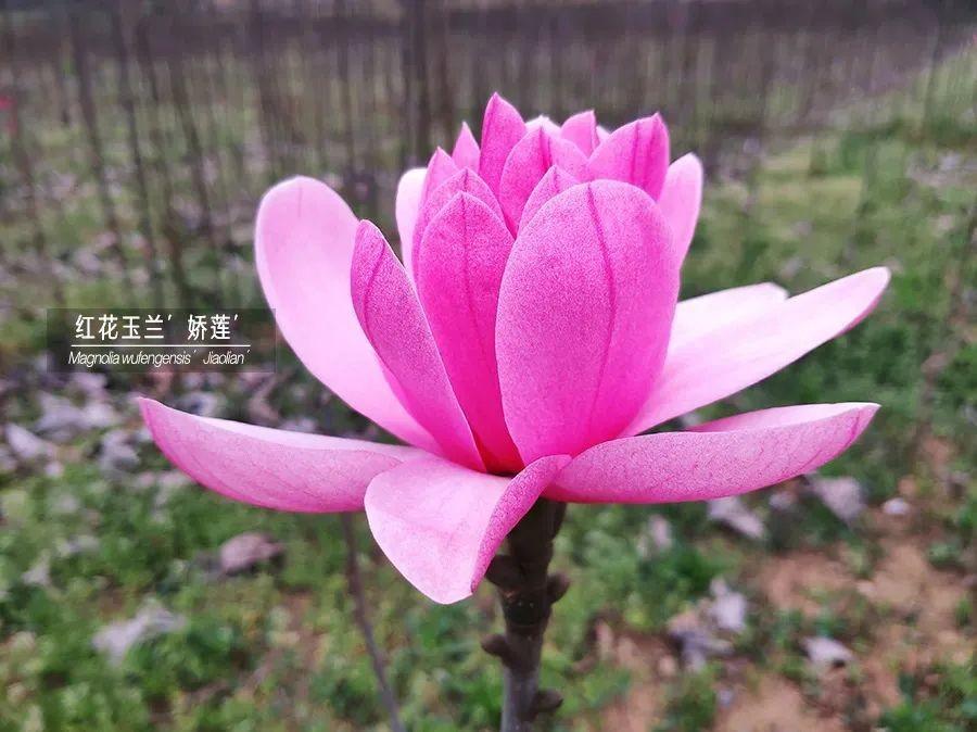 红花玉兰是北京林业大学马履一教授2004年在湖北省五峰土家族自治县发现的木兰科植物新种,马履一教授团队经过近十年的引种和区域性试验研究,才使得红花玉兰安然落地北京,同时也在华北、华中、华东、华南及西南地区的春天竞相盛放。目前,北林研究团队已经培育出了“娇红1号”“娇红2号”“娇丹”“娇莲”等优良新品种,已获国家林草局新品种办公室授权。