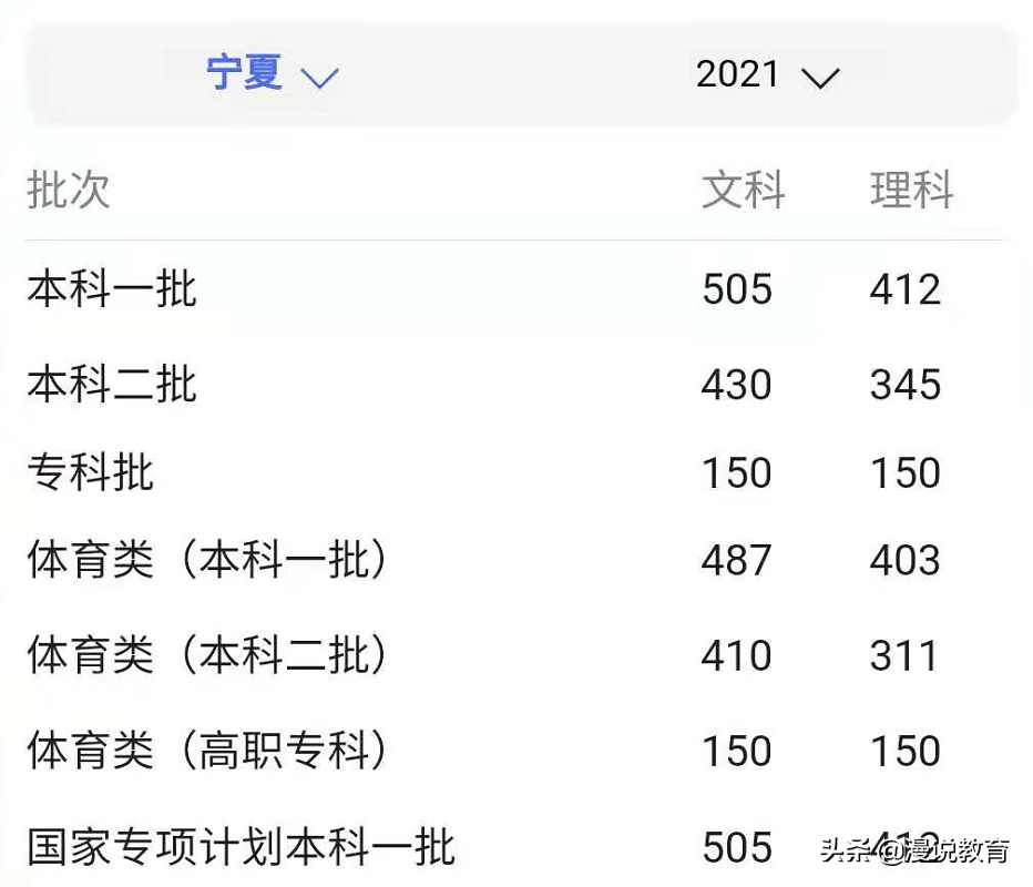 宁夏也使用全国二卷,文科一本线为505分,二本线为430分;理科一本线为412分,二本线为345分。总的来说,宁夏这几年的高考分数线也在持续降低,相比前些年,低了很多。