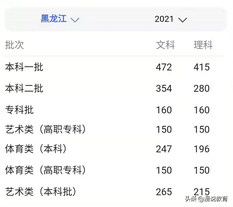 黑龙江整体分数线相当低,文科一本线为472分,二本线为354分;理科一本线为415分,二本线仅为280分。理科二本线低得让人诧异,与理科一本线相差了整整135分,这是所有省份中理科一二本线差距悬殊最大的了。