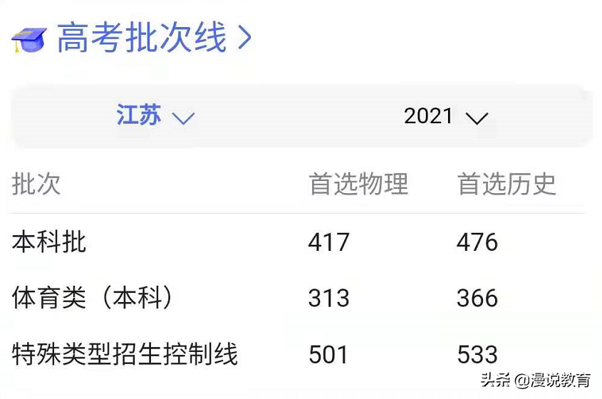 当然,在实质上,文科分数线还是高于理科分数线很多。首选历史的考生录取线为476分,而首选物理的考生录取线仅为417分,在江苏这样的高考大省,这个分数线的确是低了很多。