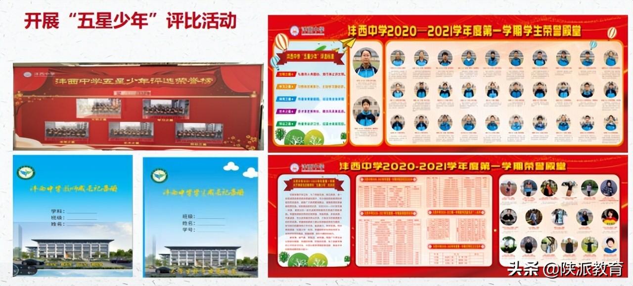 关爱学生,注重综合素质发展。该校对新生全部实施不超过35人的小班制,灵动灵活,管理效能提升,班风正,学风浓,质量高。对德、智、体、美、劳等方面表现优异的学生,分别命名为:文明之星、学习之星、体育之星、艺术之星、劳动之星。实行班级周评,学校月评,学期末,综合评选出 “沣西中学形象大使”,作为学校形象代言人,制作宣传海报,向家长发送喜报等形式予以表彰宣传。引导全体学生对照标准、不断努力奋勇摘“星”。既发挥了榜样的引领作用,又使不同方面的学生得到了肯定,促进了全体学生共同进步。本学期,被评选为“五星少年”的学生已达到220人次,学生参与率100%,受表彰率近60%。同时建立学生成长记录册和教师发展档案,记录师生成长。