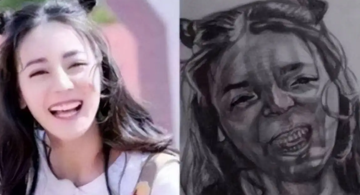 这位美术生在考试的时候,选择画的是“迪丽热巴”,左边这张参考图片看起来清纯可爱,可是再一看右边考生画的,可真是有些不忍直视的。