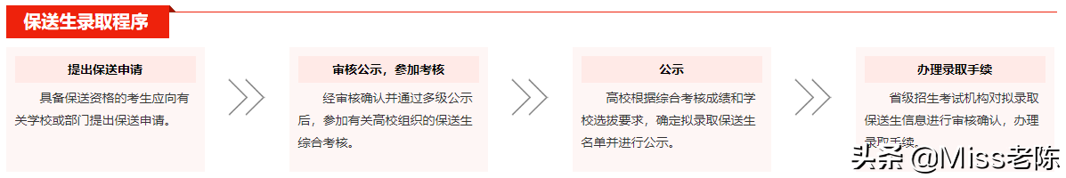③公示:高校根据综合考核成绩和学校选拔要求,确定拟录取保送生名单并进行公示,未经公示的考生不得被录取。