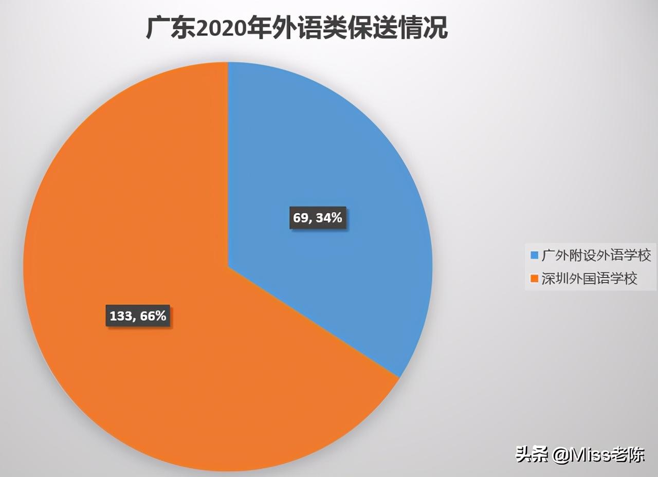 天津外国语学校、石家庄外国语学校、太原外国语学校、长春外国语学校、上海外国语大学附属外国语学校(含浦东、浦西校区)、南京外国语学校、杭州外国语学校、厦门外国语学校、南昌外国语学校、济南外国语学校、郑州外国语学校、武汉外国语学校、广外附设外语学校、深圳外国语学校、成都外国语学校、重庆外国语学校根据阳光高考网公示的2020年保送生拟录取名单中,广东省外语类保送生共有202个,占比如下: