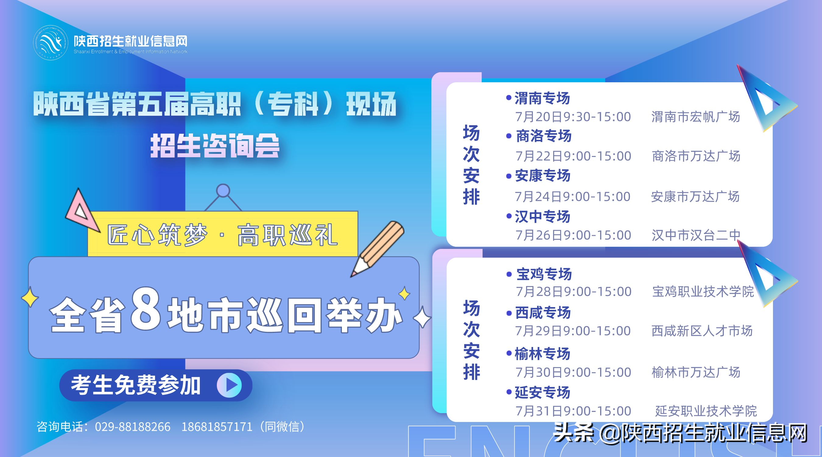 为进一步做好2022年普通高等学校招生宣传工作,向广大考生和家长充分展示学校概况、师资力量、专业设置、校园文化、就业创业等相关情况,便于考生理性选择、报考就读。2022·报考季特推出:陕西省第五届“匠心筑梦·高职巡礼”高职(专科)现场招生咨询会,在省内8地市巡回举办。