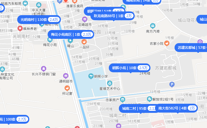 朝晖花园, 春晖花园, 光明南村, 怡安花苑, 苏建名都城, 太阳鑫城, 万濠星城, 城南二村, 城市嘉苑, 万濠世家, 城南东苑, 城南小苑,城山隐花苑,金辉花园,朝晖小苑,梅花小苑,红星嘉园,天一颐景园