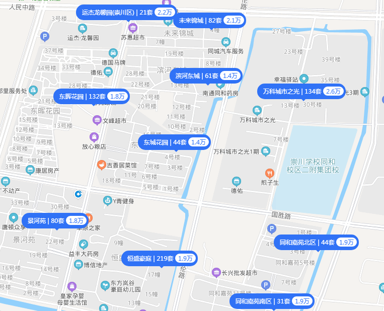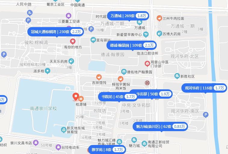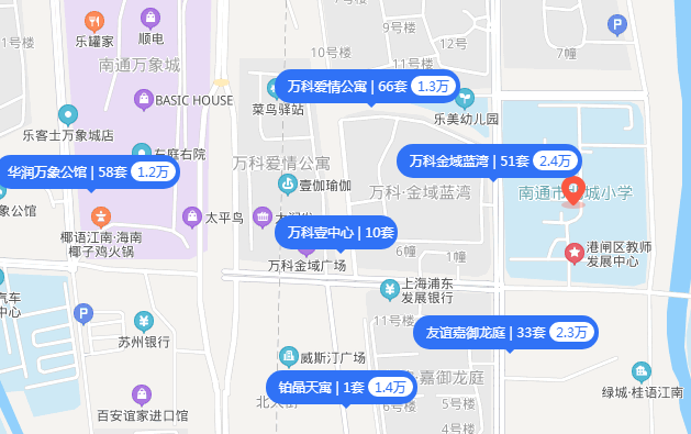 北兴园新村, 万科金域蓝湾, 友谊嘉御龙庭, 恒盛尚海湾, 盛和九里香堤, 万科金域广场, 北城一品, 苏建阳光新城, 南通华润中心, 万科公园里, 纽约时代, 华强城, 雨润·星雨华府, 南山国际社区, 银洲皇家花园, 帝奥北城名郡, 国基桂花小镇, 御景澜庭, 江海佳苑, 秦灶新村, 北城一品美墅, 民安花苑, 和丰北城锦居, 万科爱情公寓, 纽约时代(悦墅), 远创紫樾台
