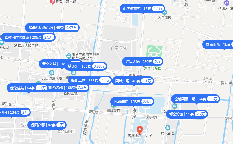 八一花园,太平南园,鑫城南苑,红星天铂,金地国际,时代都会,国城璟府,仁恒公园世纪,中南世纪花城,中南世纪新城,世纪东城,中海上林苑,远创东樾,华润置地南通悦府,翡翠华府,天一裕景苑,万科方圆,万科揽境,绿城诚园,观阳名邸,帝奥世伦名郡,天空之城,弘阳上城,时代悦城,山港桥花苑