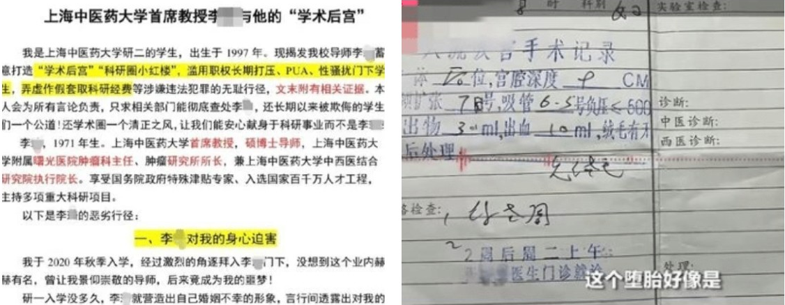 当事人表示,自己2020年入学,该教授一开始对自己非常关心,后来逐渐发展成“男女朋友”关系。自己在2021年4月查出怀孕,当时为了不给对方带来麻烦,曾独自一人到医院打胎。