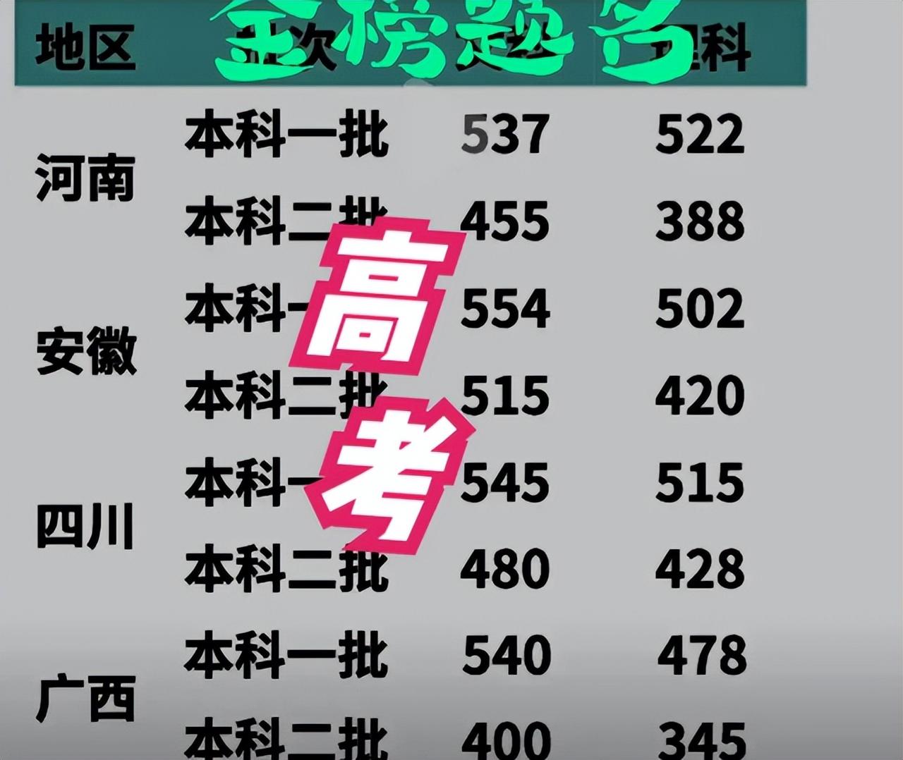 预测北京录取分数线为418分,天津为488分,海南为456分。北京与去年相比,分数线有可能会上升,但河南、四川和广西的录取分数线可能会下降,文科有望下降5-10分,理科有望下降10-15分,最低录取分数线有可能降到288。