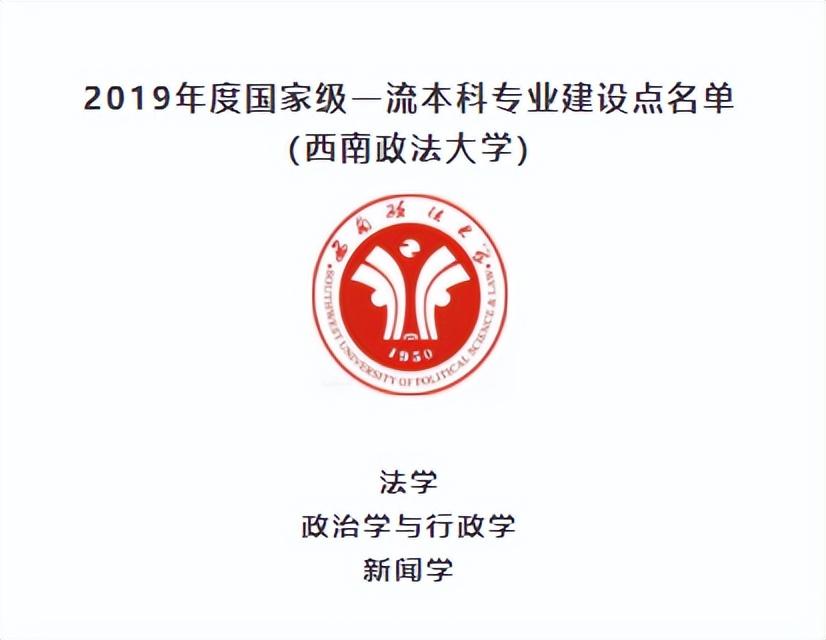 2019年,学校法学、政治学与行政学、新闻学3个专业入选教育部一流本科专业建设“双万计划”,获评为国家级首批一流本科专业建设点。